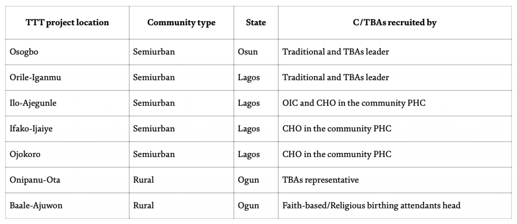 NB: n is the total number of Birthing Attendants reached by the TTT Project.